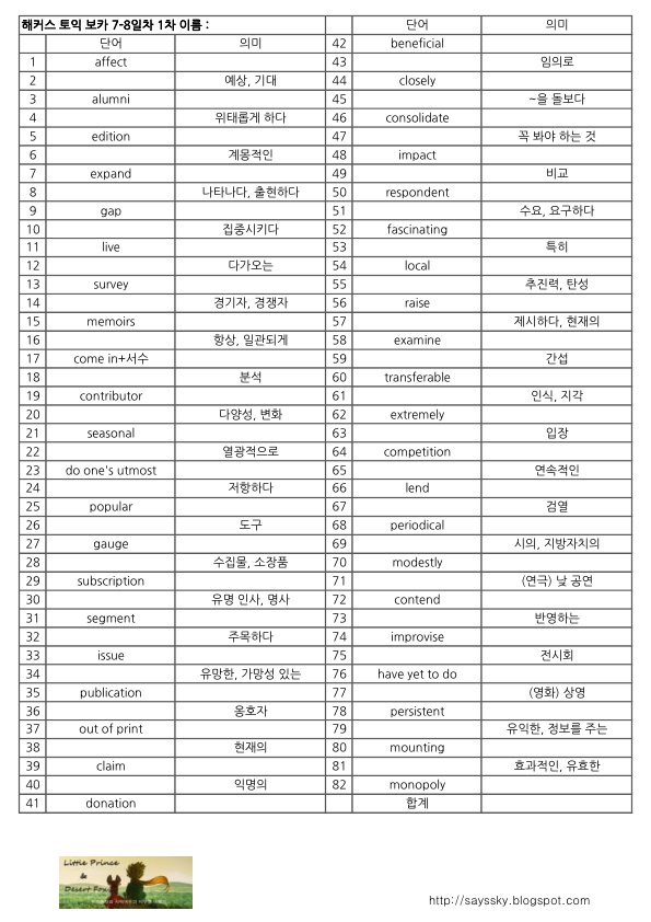 토익 Toeic 빈출 영어 단어 정리와 학습자료 학습용 엑셀파일 Anki플래쉬카드파일 포함 봉리브르 Eloquent Distractions Emergency