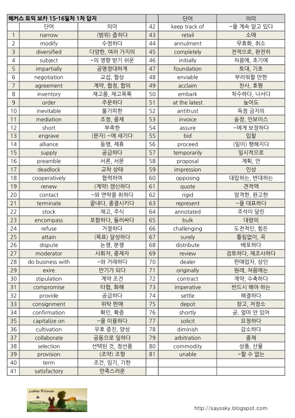 해커스 토익 보카 15 16일차 단어시험 Saying