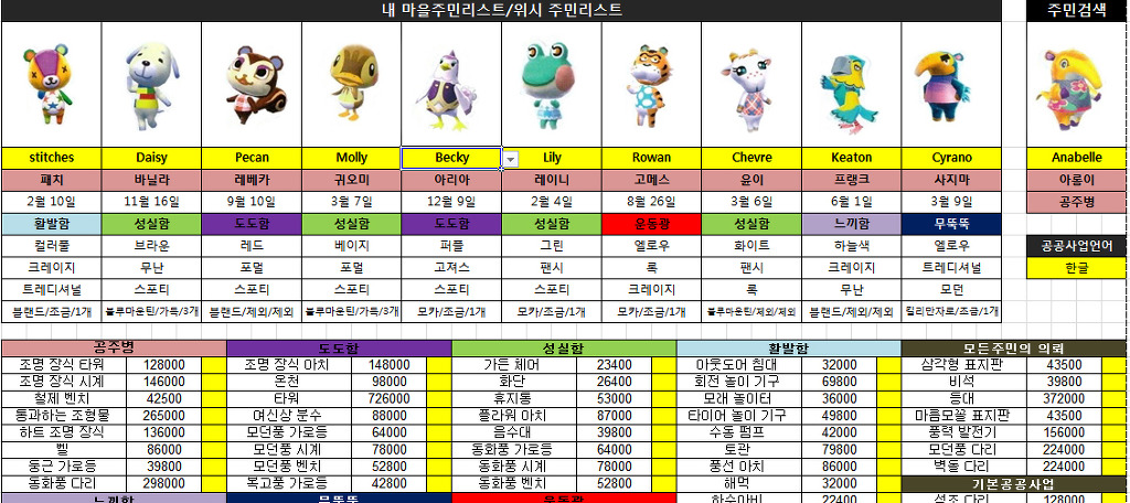9월10일 업데이트 튀동숲 주민리스트 공공사업 및 주민검색엑 동물의 숲 패밀리 전체글 보기 루리웹