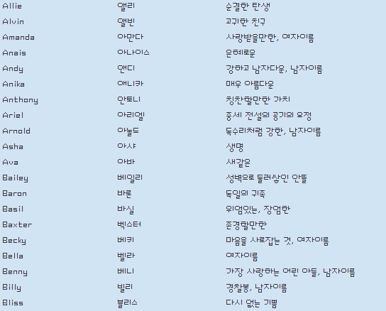영어 이름 5000개 이제는 골라서 가져보세요 네이버 블로그