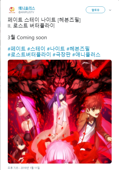 3월 개봉 페이트 스테이 나이트 헤븐즈필 Ii 로스트 버터플라이 페이트 그랜드 오더 헝그리앱 모바일