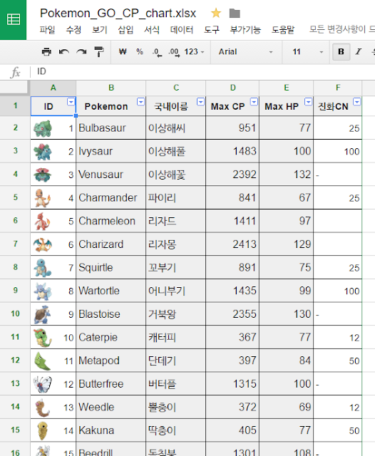 Pokemon Go 각 포켓몬 별 최대 Cp와 진화에 필요한 캔디 차트 임감독의 잡동사니