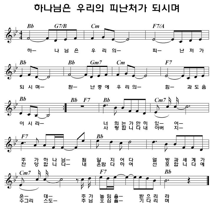 하나님은 우리의 피난처가 되시며 Bb 예배자를 위한 온라인 찬양집