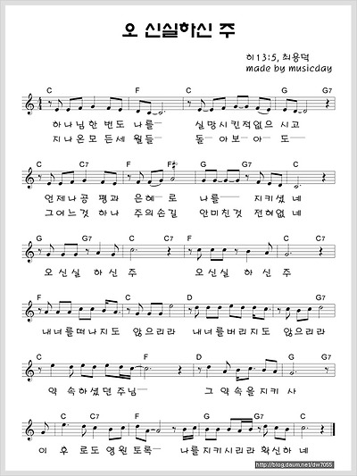오 신실하신 주 하나님 한 번도 나를 다양한 키 악보 네이버 블로그 악보 하나님 키
