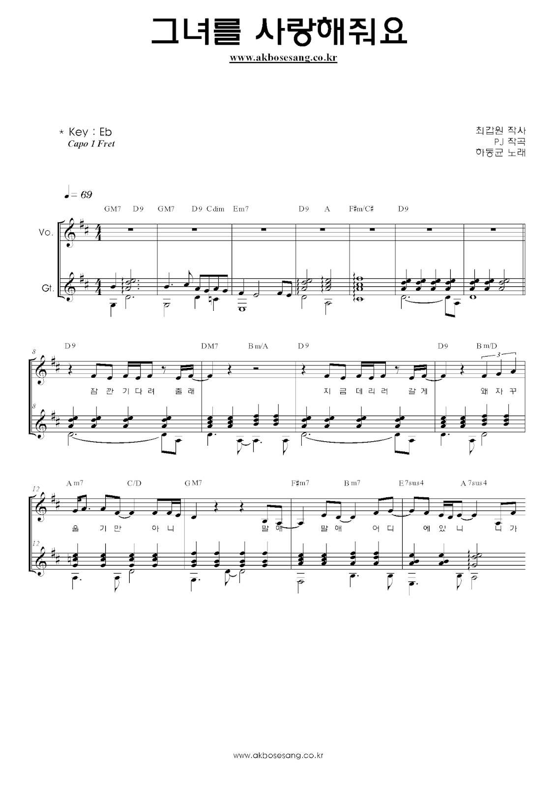 악보세상 하동균 그녀를 사랑해줘요 기타편곡 악보