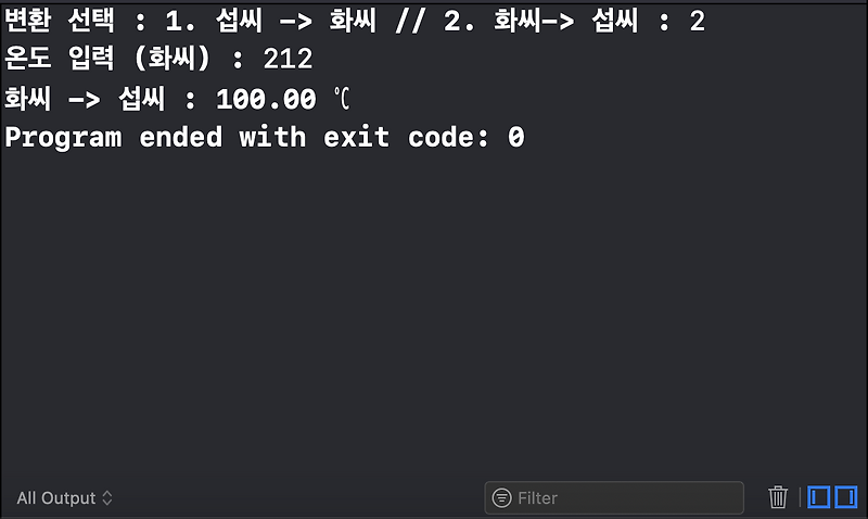 C언어 섭씨 화씨 변환 프로그램