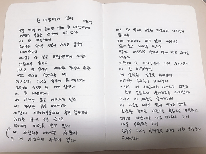 백석 흰 바람벽이 있어 일부 손글씨
