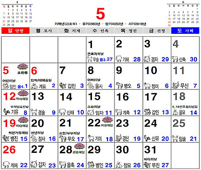 2019년 불교달력 2019년 음력달력 2019년 일진달력