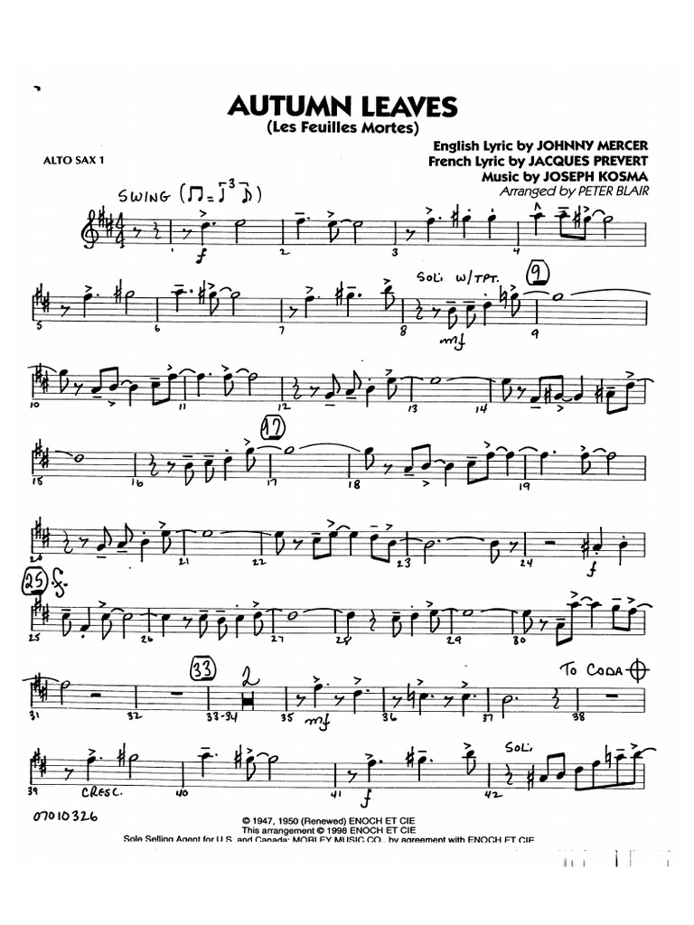 Autumn Leaves Sax Alto 1 E 2 Pdf