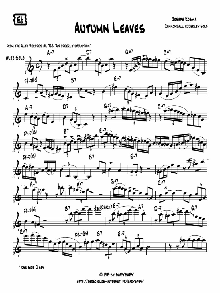 Autumn Leaves Alto Sax Solo By Joseph Kosma Digital Sheet Music For Alto Sax Download Print H0 208763 47880 From Kevin Busse Self Published At Sheet Music Plus