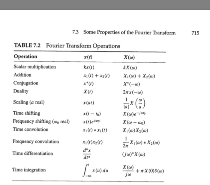 Solved 7 3 Some Properties Of The Fourier Transform 715 T Chegg Com