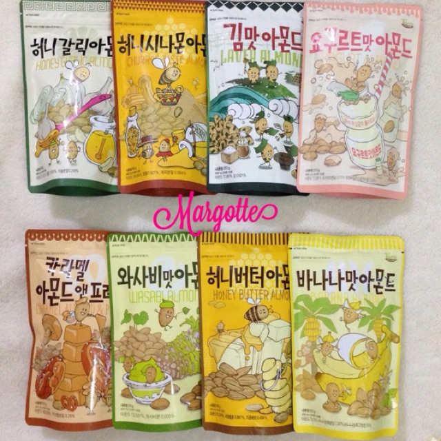 Amazon Com Gilim Tom S Farm Korean Seasoned Almonds Sampler Snack Care Pack 10g X 16 Packs Honey Butter Wasabi Seaweed Yogurt Strawberry Peach Mango Banana Hot Spicy Chicken Buldak Flavor 2