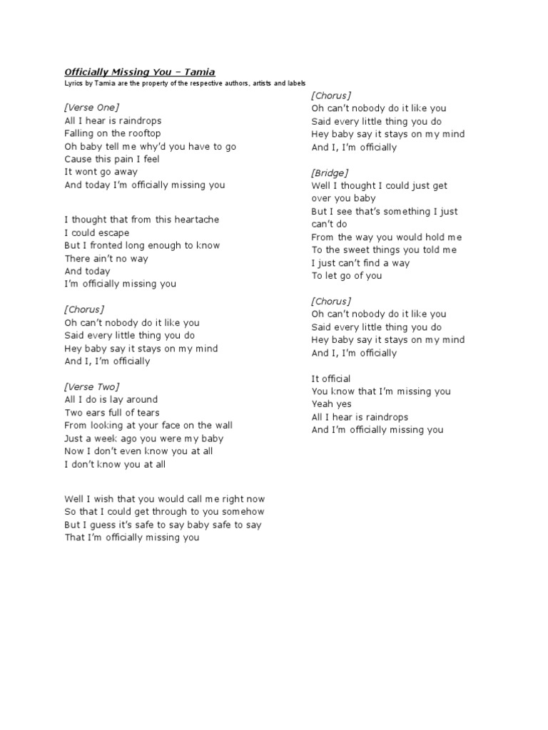 Officially Missing You Lyrics By Tamia All I Hear Is