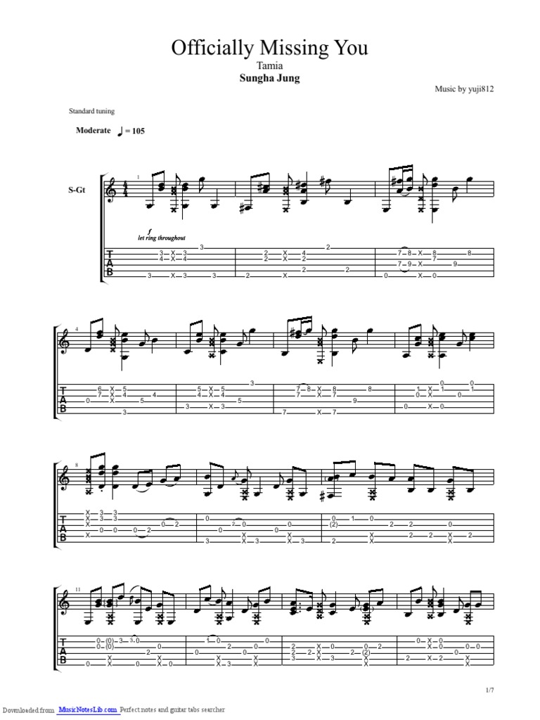 Officially Missing You Guitar Pro Tab By Sungha Jung Musicnoteslib Com