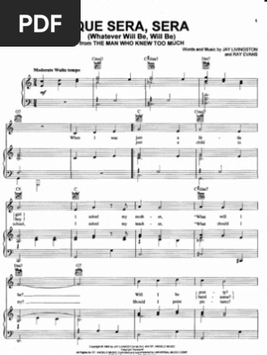Que Sera Sera By Doris Day Piano Sheet