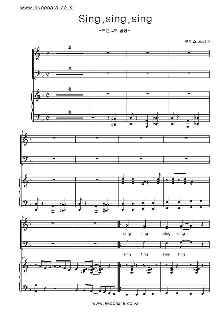 악보 Sing Sing Sing 루이스프리마악보 Sing Sing Sing악보 피아노악보 코드악보 멜로디악보 가요악보 최신악보 악보나라
