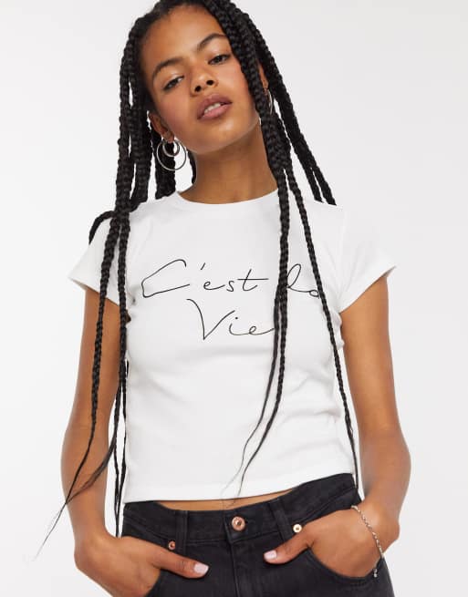 Topshop C Est La Vie T Shirt In Weiss Asos