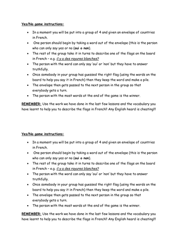 Yes No Game With Descriptions Of Flags Teaching Resources